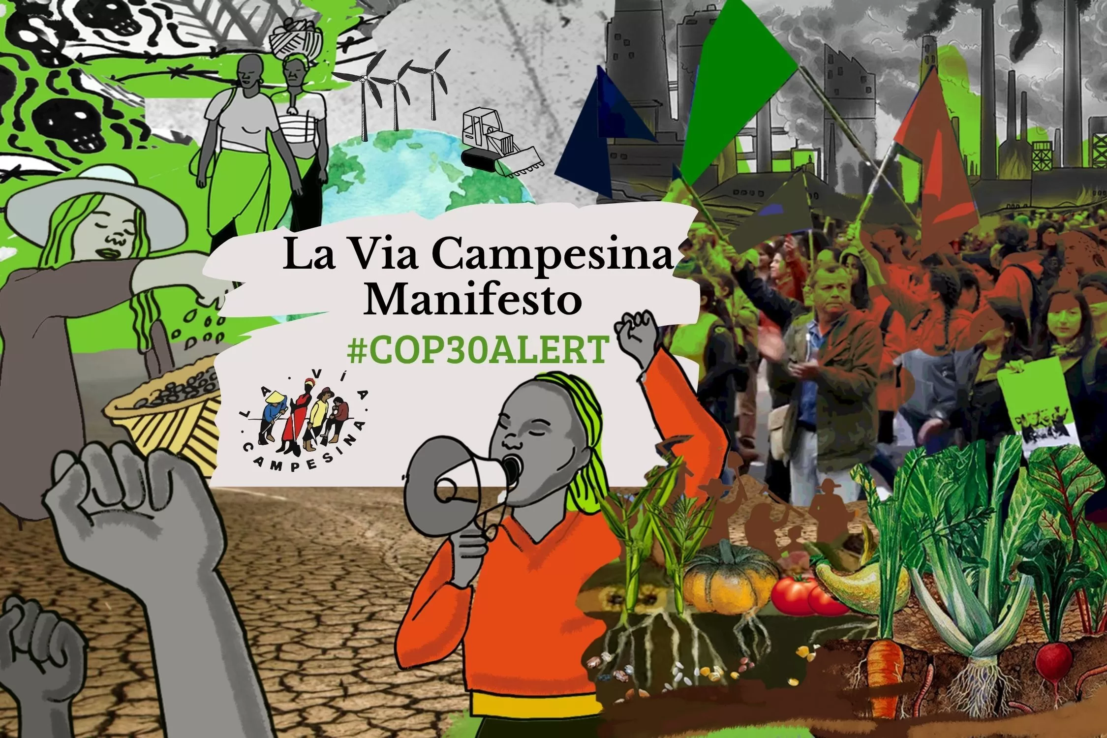 İklim krizine sebep olan endüstriyel tarım şirketleri ve onlara hizmet eden hükümetlerin şimdi de doğayı metalaştırmak ve değişimin önüne geçmek için hükümetlerarası süreçleri gasp ettiğini görüyoruz ve bunu kararlılıkla reddediyoruz… bizi uçuruma sürüklüyorlar!” (COP30 için La Via Campesina Manifestosu’ndan)